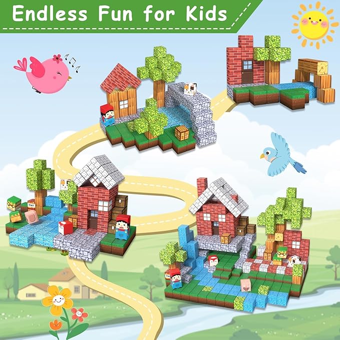 - Strong Magnets, Sturdier Builds: Powerful magnets securely connect on all sides, ensuring creations stay intact for frustration-free play and confident building