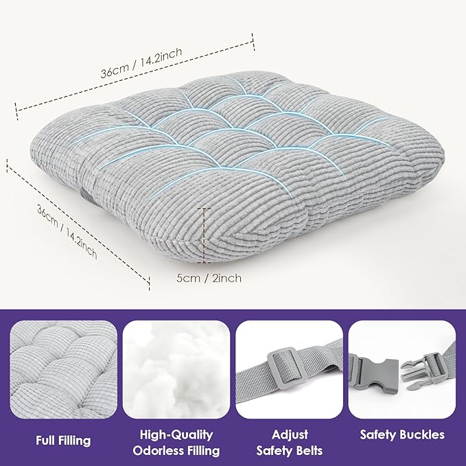 - 🔒【2 Adjustable Straps + Non-Slip Bottom for Safety】:Equipped with 2 Adjustable Safety Buckles and a non-slip bottom,at the same time, the length of the bottom seat belt is appropriately increase, so the cushion can be better fixed on the most dining chair.This booster seat for chair stays firmly in place—no sliding forward or sideways. Perfect as a booster chair for dining table, booster chair for toddlers 2-12, or booster seats for kitchen chairs at home or while traveling.