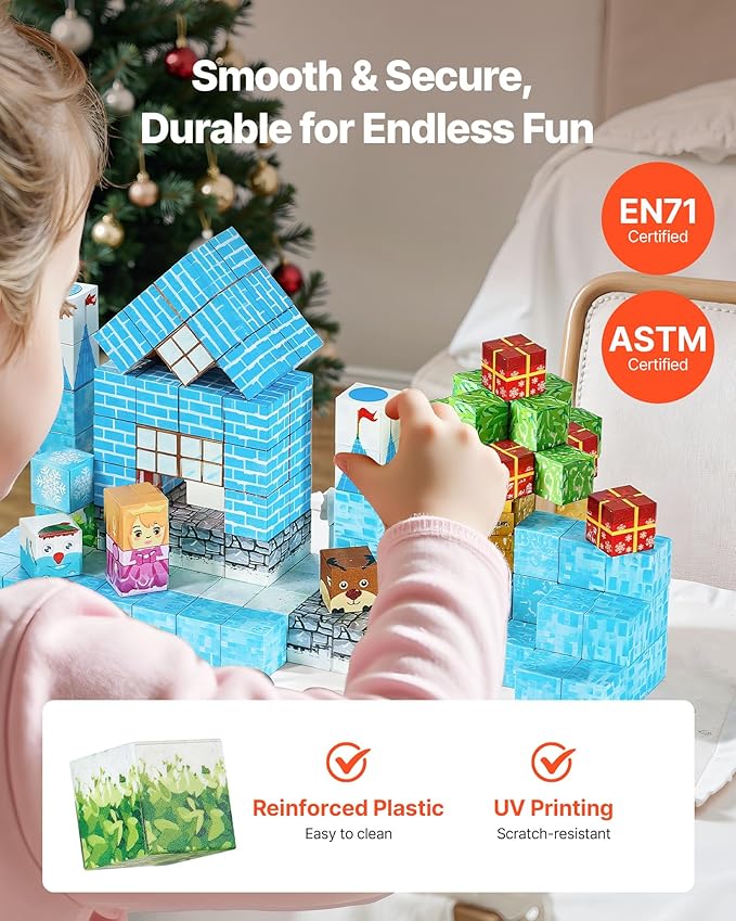 VEVOR Magnetic Blocks, 150 PCS Glacier Castle Set, Magnetic Building Cubes for Kids, STEM Montessori Sensory Toys for Christmas Birthday Gift, Construction Stacking Toy for 3+ Years Old Boys & Girls