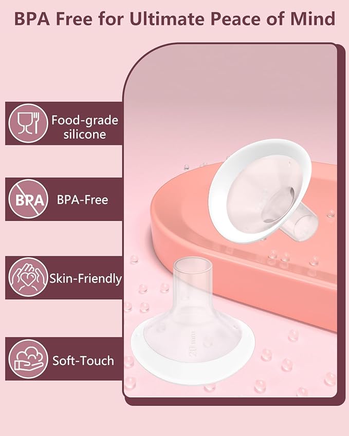 - 【Material Safety, Easy to Clean】:The breast pump flanges are made from food-grade Ma,BPA-free, skin-friendly, durable for long use.ensuring the safety of both you and your baby. Washing after each use with warm soapy water and rinse well with clean water. Our material can be sanitized using around 100°C (212°F) water steam or boiling water, and dishwasher safe.