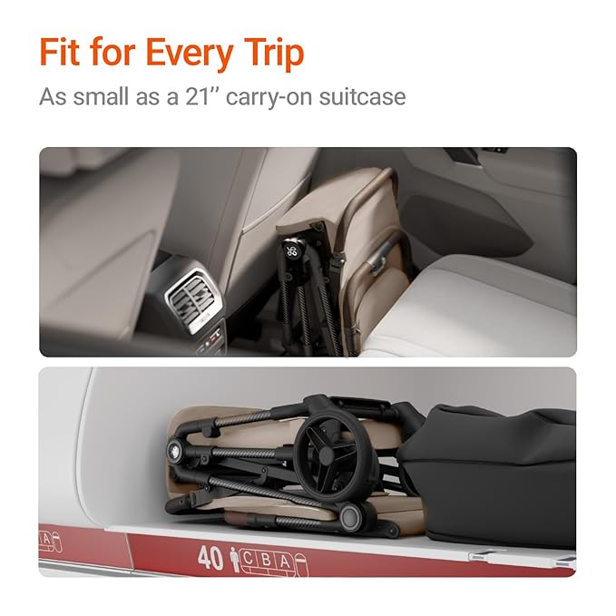MAMAZING Lightweight Baby Travel Stroller with Carbon Fiber Frame, Compact & Airplane-Friendly, One-Handed Folding Design, 11.6 lbs, Perfect for Toddlers, Organizer & Cushion Included, Simply Taupe