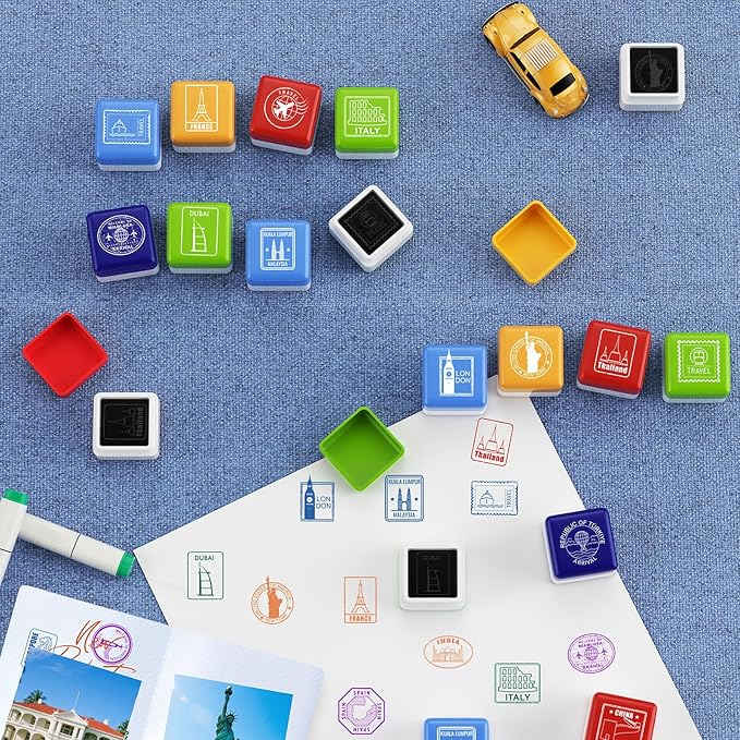 - Great for crafts and creativity – These detailed stamps can be used to personalize scrapbooks, greeting cards, travel journals, letters, and party invitations, sparking kids' creativity while reinforcing geography skills.