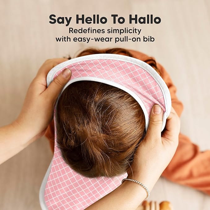 - For Active Infants, Toddlers - The Hallo Baby Teething Bib features a pullover lap shoulder design—no snaps, easy to put on. Just slip it over the baby's head like a t-shirt, and you’re all set. It stays on all day, even for the most active toddler.