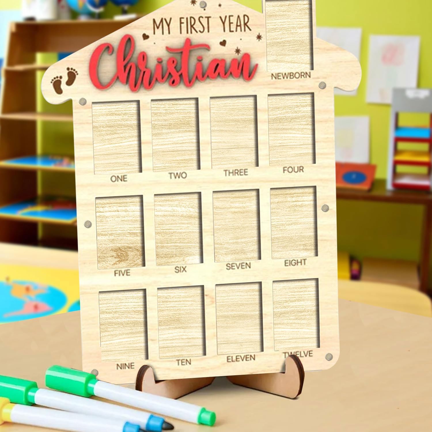 - Our my first year frame features a unique design with hook and point stickers for easy hanging and decoration. Made from high-quality, thick wood, this 12 Month Photo Frame offers lasting durability. Let your baby's photos shine in these baby milestone board, babys first year photo frame, 1-12 months baby milestone picture frame, baby first year frame and my first year picture frame, 12 months photo frame, first year baby frame and my first year picture frame 12 months.