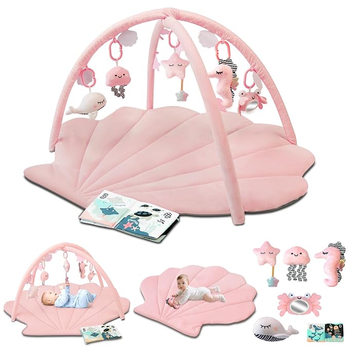 - BEST BABY SHOWER GIFTS: The ocean-themed baby play mat will meet the needs of babies at different stages of development. The newborn activity center mat can grow with your baby and play its indispensable role in different stages of baby's growth. With plenty of baby essentials toys, this play mat will be the perfect and most popular present for new parents at baby showers, birthdays and special occasions