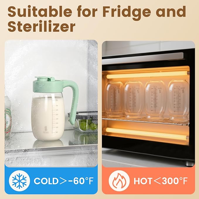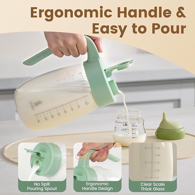 - 【Large Capacity & Multi-Functional】This 32oz glass container for breastmilk is perfect for storing breast milk or mixing formula, with extra space for 5oz of powdered formula (add gradually to avoid overflow). Its multi-functional design works as a breastmilk jug, formula pitcher, or even a water pitcher—ideal for busy moms!