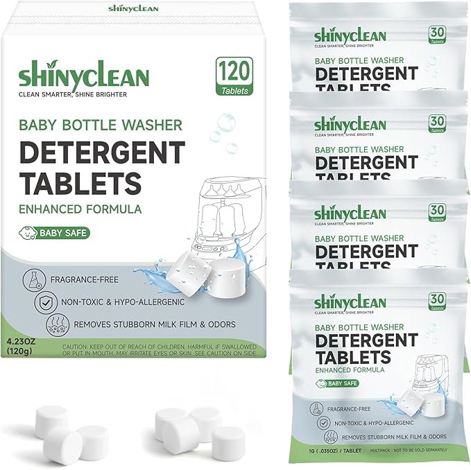 120PCS Baby Bottle Washer Tablets for Momcozy & Baby Brezza Pro, Natural Enzyme Detergent,Deep Cleaning, Chlorine & Fragrance Free, No Residue, Universal Fit All Bottle Washers Machines