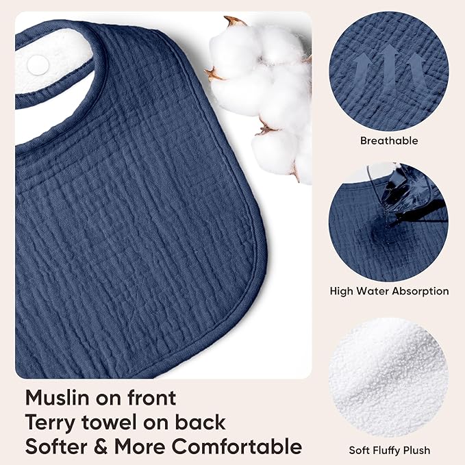 - 100% Cotton: Bearmoss muslin baby bibs are made with 100% cotton material that is soft and gentle for your baby's delicate skin. With soft muslin fabric, making baby bibs lightweight and breathable, also perfect for everyday wear.