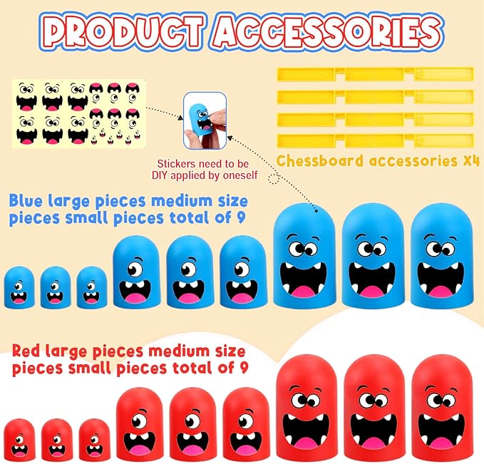 - Innovative Nesting Design: Break free from classic tic - tac - toe! Our game has 3 - sized nesting dolls (9 red & 9 blue, 3 per size). with fun expression stickers. Big dolls cover small ones, adding strategic “takeover” layers for fresh, engaging play