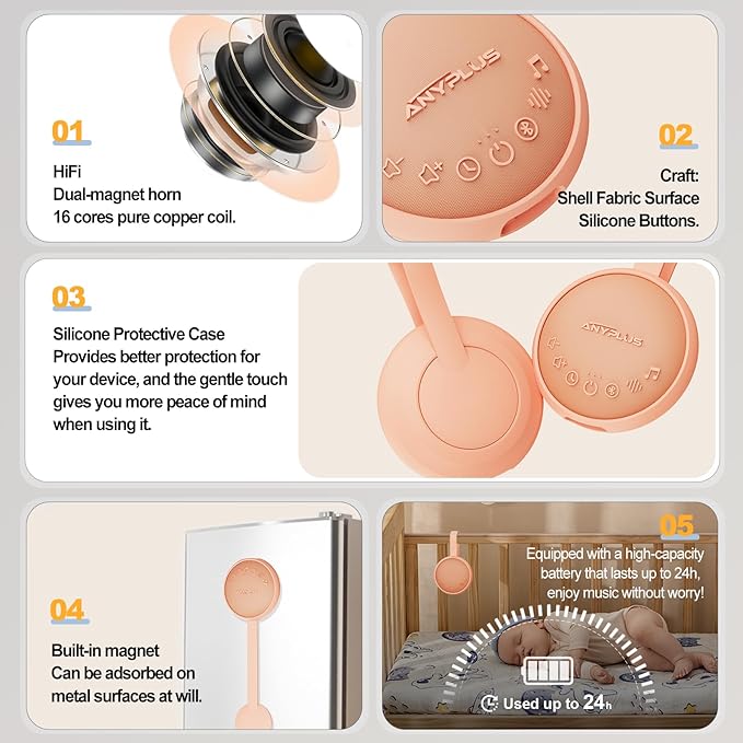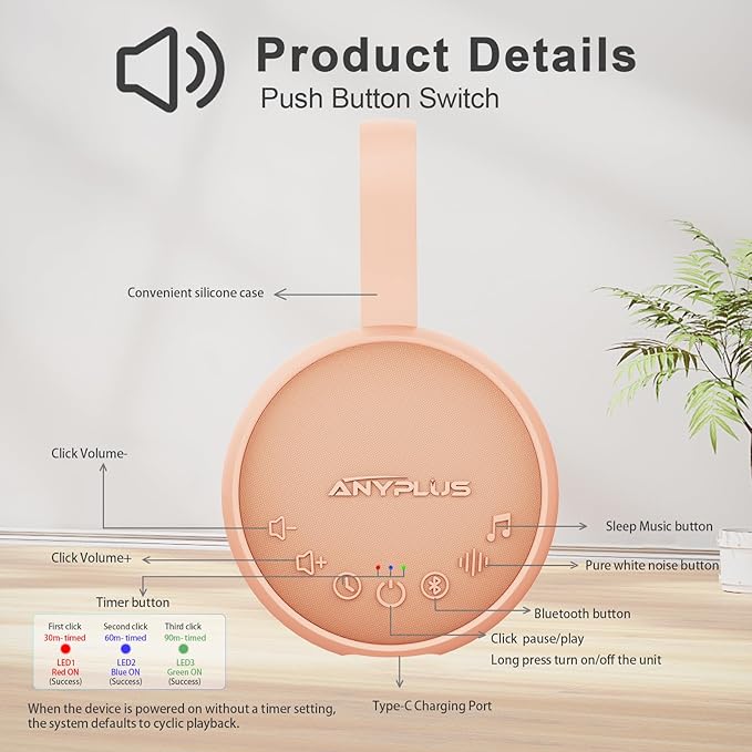 - Safety & Protection Design: White noise sound machine equipped with a silicone protective cover design to ensure safety and durability during use. Whether it's soothing babies or improving adult sleep quality, you can use it with peace of mind and enjoy a peaceful sleeping environment