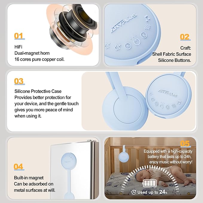 - Safety & Protection Design: White noise sound machine equipped with a silicone protective cover design to ensure safety and durability during use. Whether it's soothing babies or improving adult sleep quality, you can use it with peace of mind and enjoy a peaceful sleeping environment