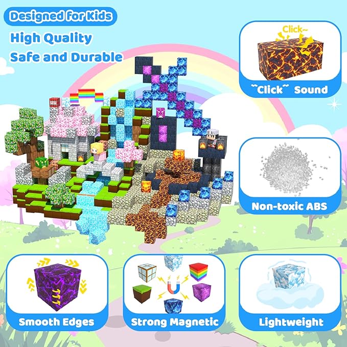 - 【Perfect Gift for Kids】These magnetic blocks spark creativity, problem-solving skills, and fine motor development. Perfect for summer vacation play, they double as birthday gifts, Christmas presents, classroom prizes, school activity rewards, or holiday treats and more. Blending fun and learning, these toys are a top choice for parents who want gifts that grow with kids!