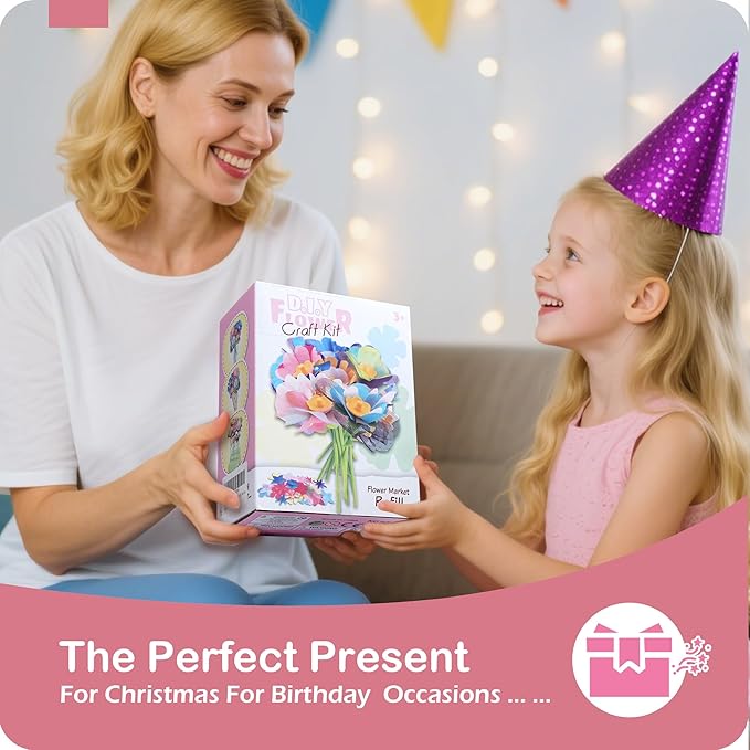 - Ideal Gift for Little Crafters - Packaged in a colorful box, this DIY flower bouquet set makes a perfect birthday, holiday, or rainy-day gift for girls and boys. Let kids proudly display their handcrafted bouquets or give them as thoughtful handmade presents to family and friends.