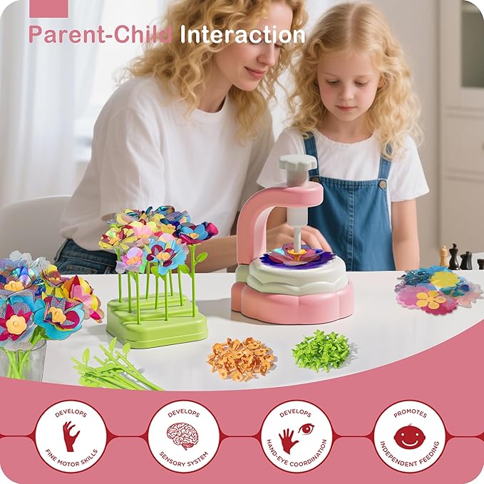 - Safe & Easy to Use - Our arts and crafts for kids designed with kids in mind, the kit features child-friendly materials. The rounded-edge flower making machine and soft fabric materials ensure safe crafting. All components are non-toxic and durable, ensuring a safe and frustration-free crafting experience for ages 4 and up. Simple step-by-step instructions guide kids through assembling petals, attaching stems, and decorating—perfect for little hands to operate independently or with family.