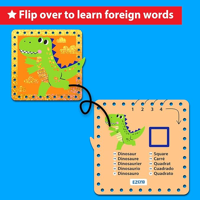 - đŻComplete Educational KitđŻ Everything included for immediate play: 10 premium double-sided animal and space-themed cards with pre-punched holes, 10 dual-tip laces, and multilingual learning guides - no additional purchases needed.