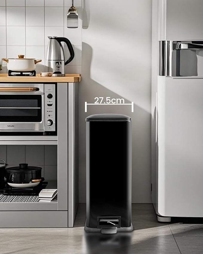 Kitchen Rubbish Bin, 45 Litre Waste Bin, Large Pedal Bin, Kitchen Rubbish Bin with Softclose Lid and Inner Bin, Slim Pedal Bin for Kitchen, Bathroom and Office, Black