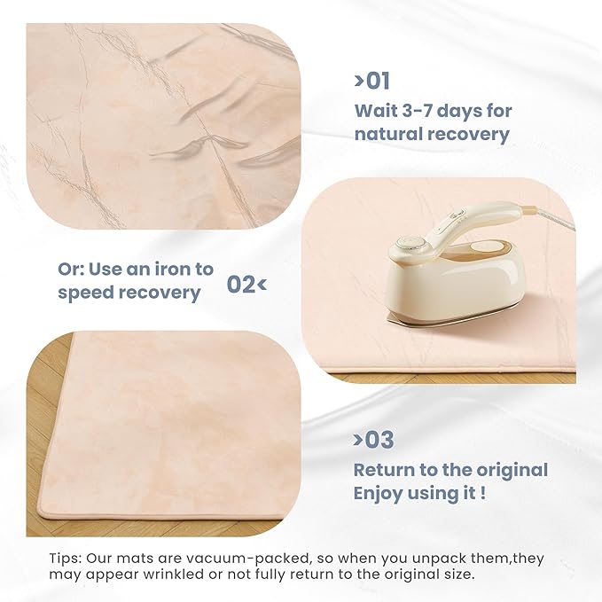 - 【Water-Repellent & Easy Clean】The nursery rug's water-repellent surface makes cleaning a breeze. Simply wipe away wet spills and stains with a damp cloth.For dry debris,wipe them off with a dry cloth, or use a vacuum cleaner. Our mat is vacuum-compressed,please wait for 3-7 days to allow it to fully expand to its original state. You can use the iron gently to help speed up the process.