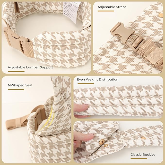 CycleMore Ergonomic Baby Carrier Newborn to Toddler - Lightweight & Breathable Infant Carrier with 3 Carry Positions, Hip-Healthy M-Shape Seat for 7-35 lbs (Houndstooth)