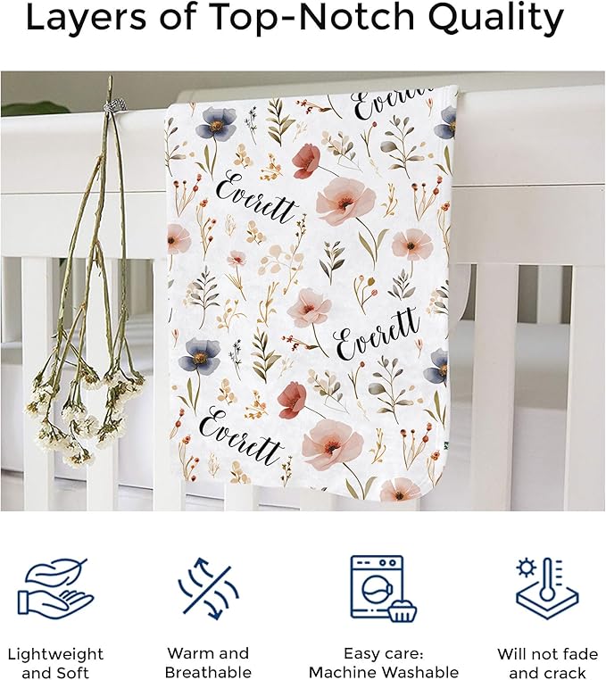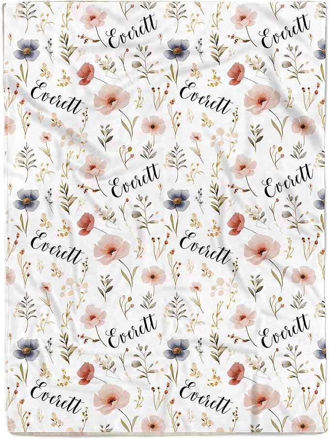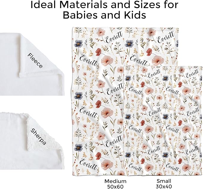 Custom Baby Blankets for Boys, Customized Baby Boy Gifts with Name, Personalized Baby Blankets, Soft Plush Fleece (Wildflower TM14)