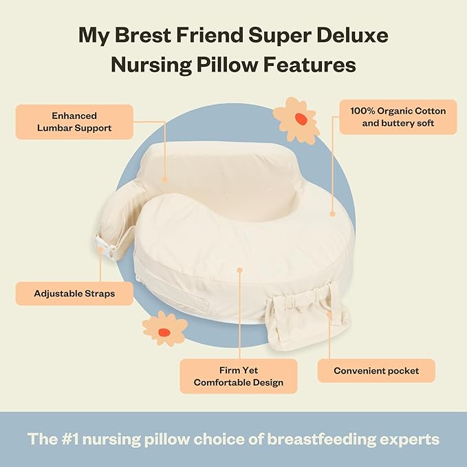 My Brest Friend Super Deluxe Nursing Pillow - Enhanced Comfort & Ergonomic Breastfeeding Pillow for Ultimate Support for Mom & Baby - Adjustable and with Handy Side Pocket,100% Organic Cotton Oat
