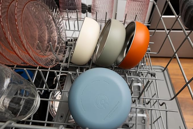 - SILICONE COATING: Designed for kids in mind. The food grade silicone is non-toxic, BPA free, and provides a soft touch finish that insulates from heat, prevents the bowl from slipping off the table, and eliminates the loud banging noise typical of stainless steel hitting against hard surfaces!