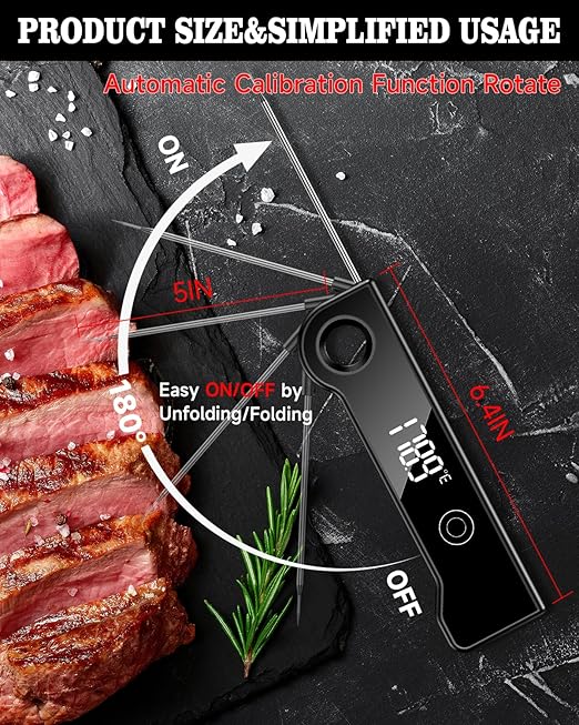 2025 Meat Thermometer Digital, ±0.5°F Accuracy Instant Read Thermometer180° Rotating Display, Calibratable and Auto Off, IP67 Waterproof Food Thermometer for Cooking,Grill,Oil Deep Fry, Brewing,Candy