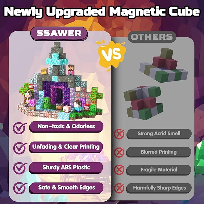 - Premium Quality Material: Meet US toy standard and safety test approved. Our magnetic building blocks are made of durable ABS plastic, embedded with 8 magnetic contact points to enhance magnetic force, perfect for kids of ages 3 4 5 6 7 8 9 10 11 12 to easily stick cubes together and build sturdy structures.