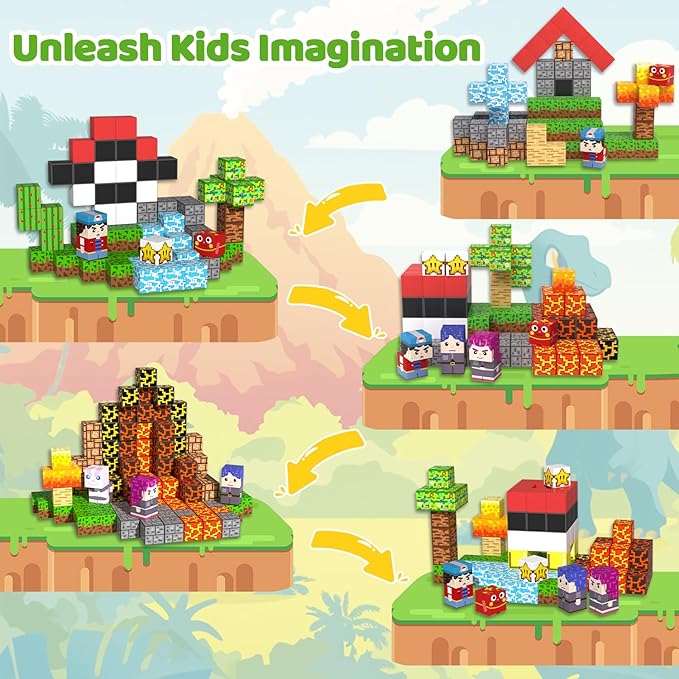 - Creativity & Imaginaions: Embark on a magnetic blocks adventure! These magnetic blocks inspire open-ended play, even with included references, kids can build, dismantle, and rebuild freely using their creativity. Our magnetic cubes spark imagination and boost hands-on skills. Play this enjoyable magnetic blocks set with kids at home to strength parent-child relationship. Ideal toys for kids 3+ years old.