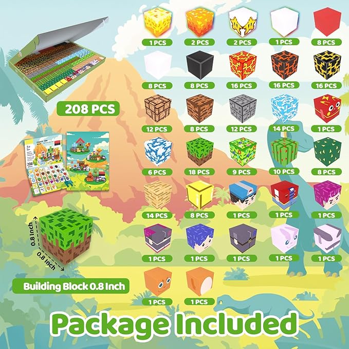 - Magnetic Building Blocks Light Up for Kids: This set includes 208pcs magnetic blocks in 54 distinct designs, light up blocks: 6pcs, plus a creative storybook packed with step-by-step building patterns. It’s the perfect screen-free activity to spark imagination, kids can follow the illustrated guides or design their own structures from scratch.