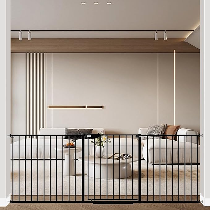 - 【Multi Use】The width of the triple lock extra wide pressure mounted baby gate can be adjusted from 29.7 inches to 90.9 inches so that it is available for stairs, doorways, and other diverse occasions to stop babies or pets to climb over. Tips: before installation, there will be a gap between the wide gate latch and the frame which is NOT a defect and it is NOT bent. This gap will disappear once installed