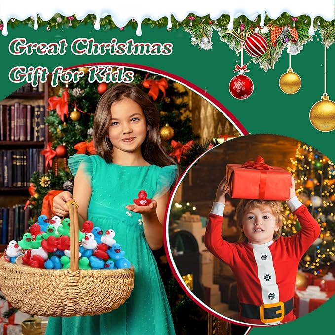 - 4 Distinct Styles: the Christmas assorted rubber ducks come in 4 distinct colors, green, red, white and blue, paired with love and heart elements, which are all inspired by the theme of Christmas; The 50 pieces for each style means there's a delightful variety to choose from; Whether gifting these as a token of Christmas or using them for decoration, these styles enhance the overall appeal and excitement