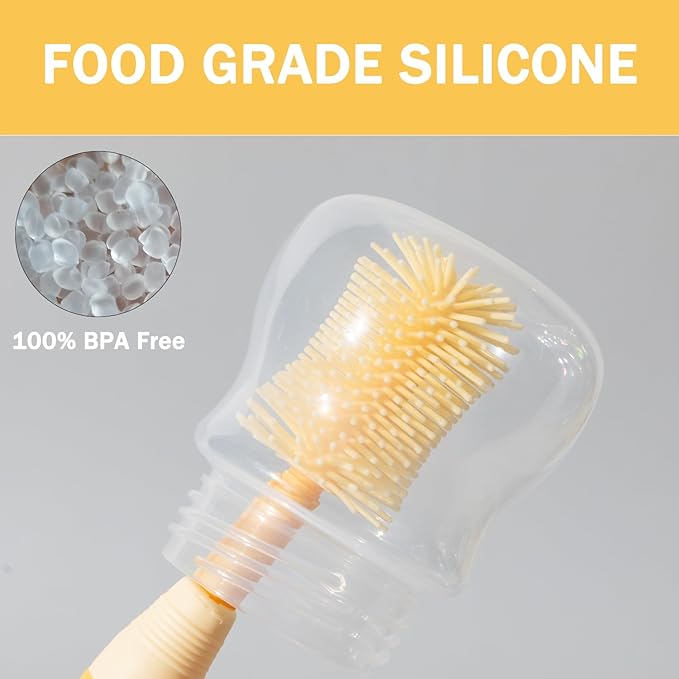 - Essentials for Travel and Home - Whether you're at home or on the go, silicone baby bottle brush set is the perfect companion for keeping your baby's bottles clean.This for-travel kit of bottle cleaner is also a thoughtful gift choice for close friends and family alike.