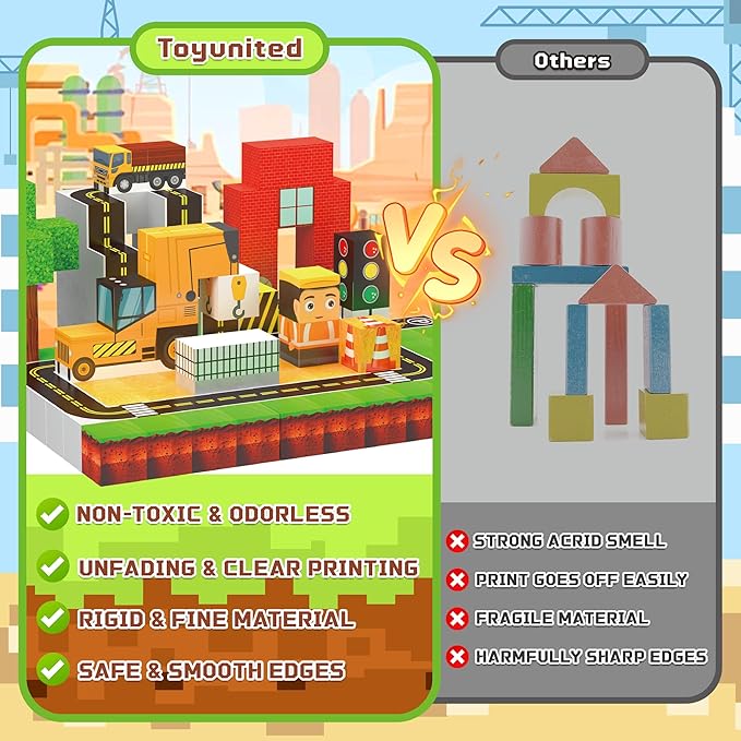 - 【High-quality & Safe Materials】Premium & Safe Magnetic Blocks: Made with durable, non-toxic ABS plastic & certified (CPSIA/ASTM). Features 8 internal magnets for strong builds, sealed construction to prevent magnet exposure/swallowing, and smooth, rounded edges. For ages 3+. Build worry-free!
