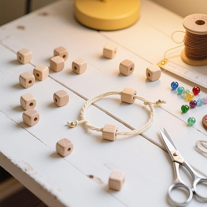 - Untreated Wood Surface: These square wooden beads for crafts retain the wood grain texture, making them easy to paint or draw on directly.