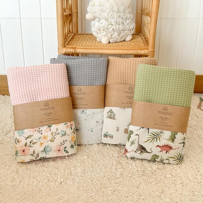 - ULTRA-SOFT ORGANIC COMFORT - Wrap your baby in the gentle embrace of our waffle baby blanket, crafted from 100% organic cotton, this floral print blanket offers a breathable and soothing touch against delicate newborn skin, ensuring a cozy and peaceful rest.