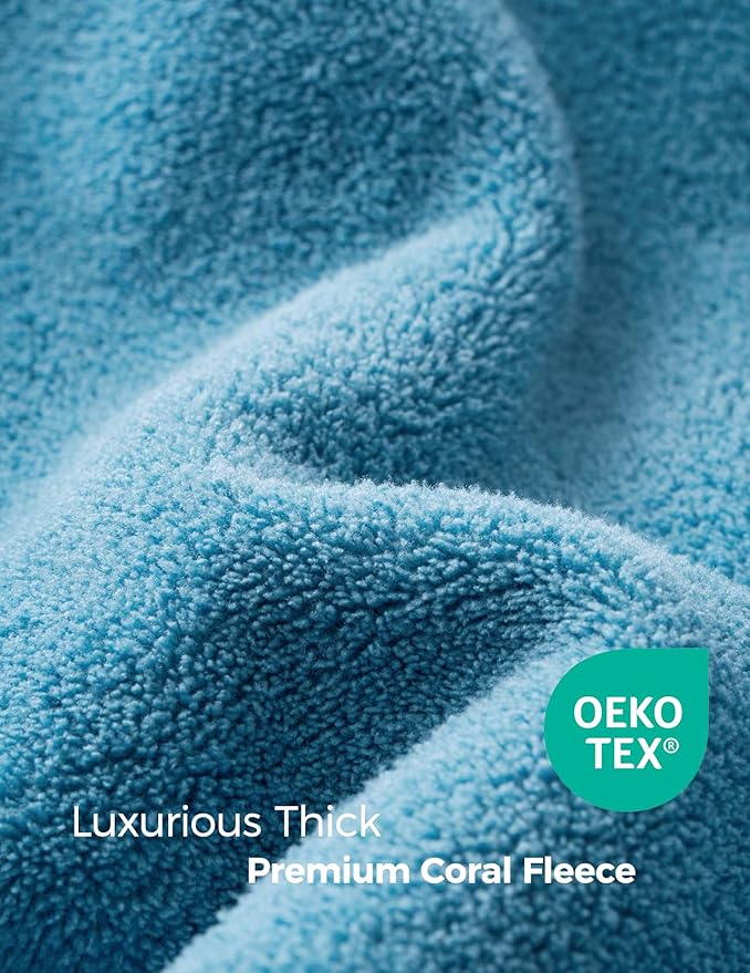 - [Luxuriously Thick and Plush, Baby's Bath Time Buddy] Made of premium coral fleece (specific: 87% polyester, 13% polyamide) and 500GSM thickness, hooded towels feel as soft as a cloud with a plush and fluffy texture for gentle on baby's skin. It is softer and more comfortable than cotton bath towel with better warmth retention to effectively lock in heat. The combination of softness and warmth keeps baby cozy and warm after bath