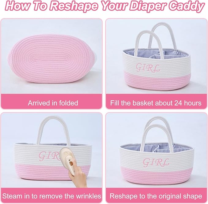- Shower storage: Our diaper baskets come in blue and pink, suitable for both baby boys and girls. These baby diaper organizers are not only beautiful but also highly practical, making them ideal as gift baskets for baby showers, Christmas, or newborn celebrations. Thoughtful and versatile, the diaper caddy organizer is a must-have item for new parents.