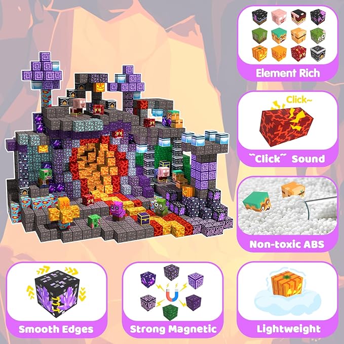 - 【Premium Quality Material】Meet US toy standard and safety test approved. Our magnetic building blocks are made of durable ABS plastic, embedded with 8 magnetic contact points to enhance magnetic force, perfect for kids of ages 3 4 5 6 7 8 -12 to easily stick cubes together and build sturdy structures.