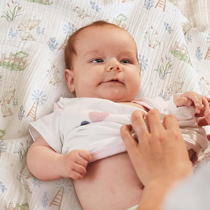 - MULTI-FUNCTIONAL USES: Baby muslin swaddle blanket can be used in many different ways, support infants and parents as a tummy time blankie, nursing cover up, changing table or stroller cover. The swaddling blanket can be used all around the home or going out as they come in super handy when bathing, feeding, burping, swaddling or cleaning baby. Reusable and very soft, breathable and absorbent.