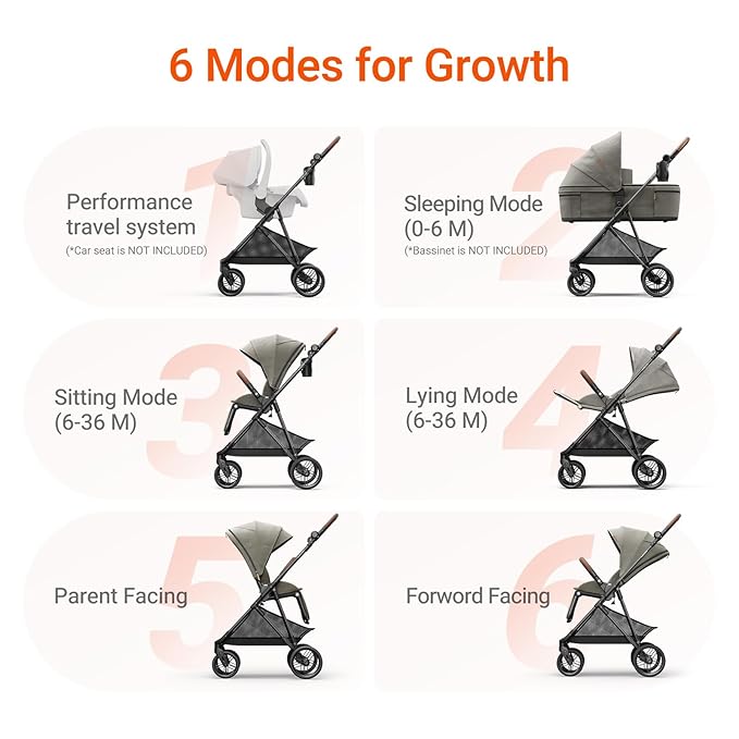 - Car Seat Adapter Included: Enjoy seamless travel from infant car seat to stroller with the included car seat adapter—no need to purchase separately. This convertible stroller grows with your child, serving as both a bassinet stroller and toddler stroller.