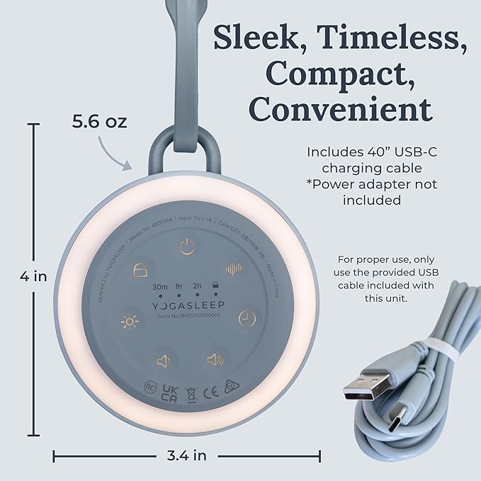 Yogasleep Hushh 2 Portable Sound Machine for Baby & Kids, New Reinforced Clip, Backlit Buttons, Night Light, 6 Soothing Natural Sounds, Easy to Use Timer, Volume Control, Toddler Lock, Noise Canceling