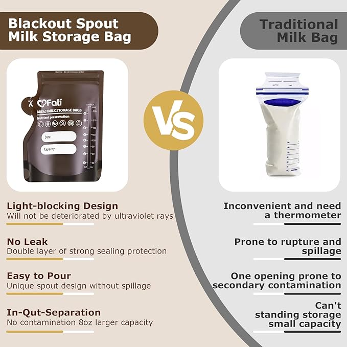 - [ADVANCED LIGHT-BLOCKING PROTECTION FOR BREASTMILK] Utilizing light-blocking technology effectively reduces light refraction; our breast milk storage bags shield your liquid gold from damaging light exposure. This superior protection, essential for any newborn, effectively preserves the nutrients, delicate quality, and natural taste of your breastmilk.