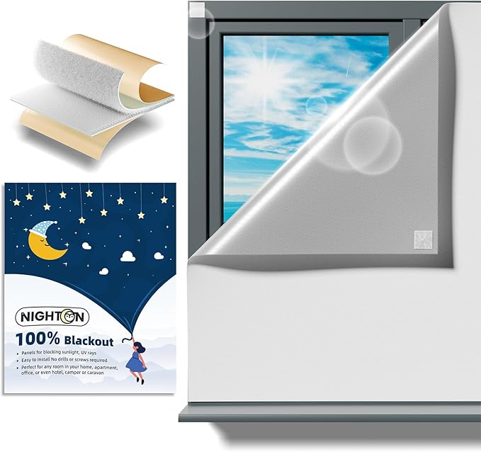 - 100%BLACKOUT- Nighton 100% blackout curtains, lightweight fabric for easy portability, blocks sunlight in summer and reduces heat loss in winter, Perfectly blackout shading to create a comfortable dark sleeping environment