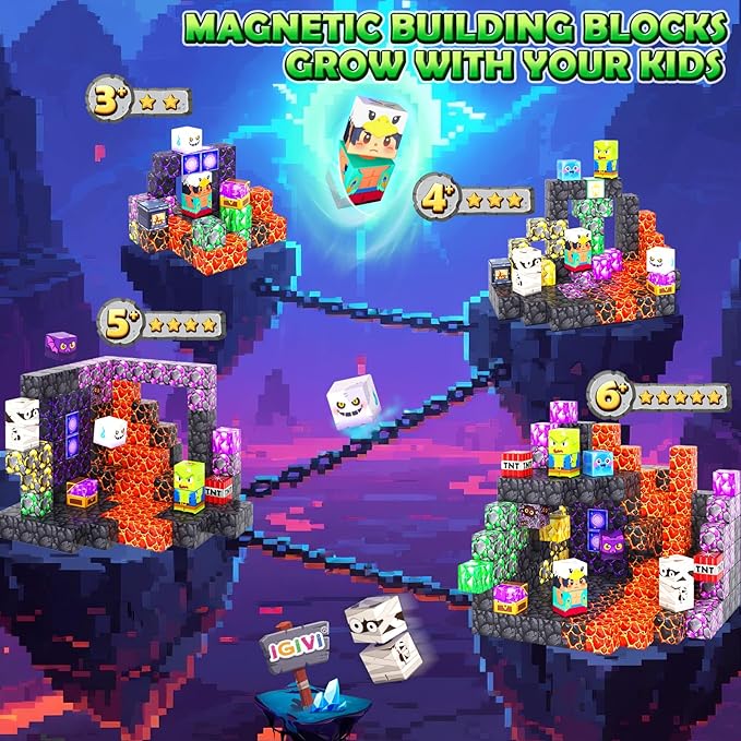 - Build 3D Magnetic Blocks World: Embark on magical adventures with the 100PCS IGIVI magworld lava cave set! In this magnetic building blocks set, kids will transform into brave knights, activate magic portals, traverse scorching lava rivers, and find hidden treasures!