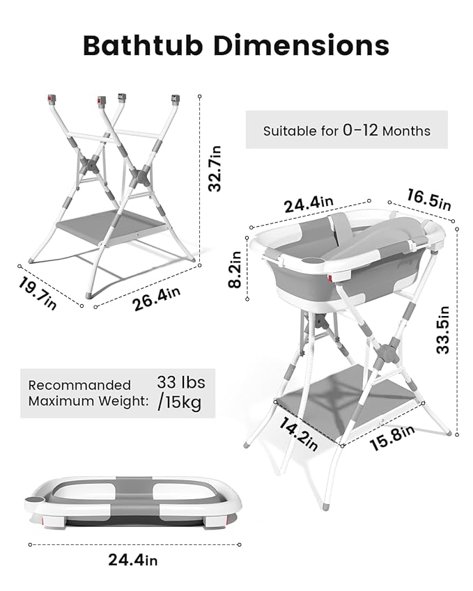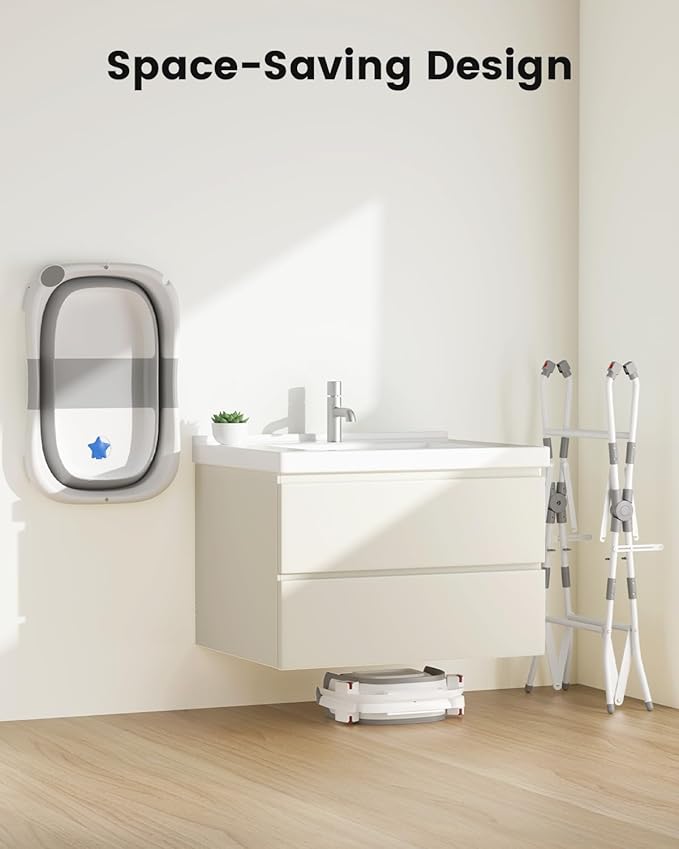 - 【PREMIUM MATERIAL】The bath stand made with high strength iron and pp thermoplastic elastomer. The smooth surface of this foldable baby tub allows for quick and effortless cleaning. Simply wipe with a damp cloth to maintain a hygienic bathing environment, ensuring your toddler's health and well-being.