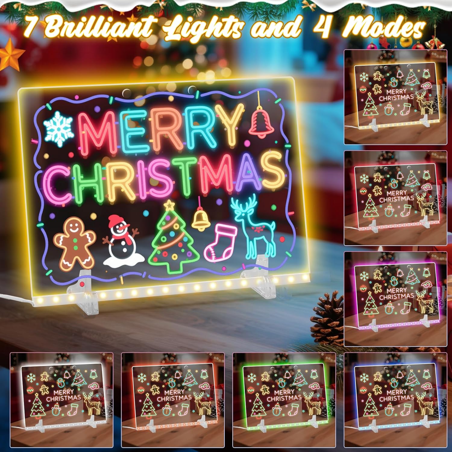- LED Note Board with 7 Colors,13.7"X10" : This erasable acrylic light-up drawing board features 7 RGB lights and 4 light modes, including dynamic and static effects. You can choose the right lighting for your artwork and let your creativity shine.