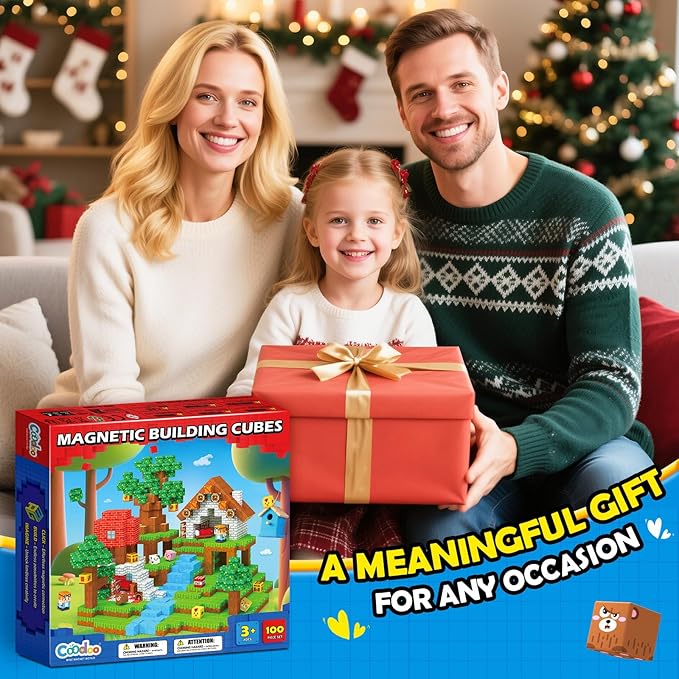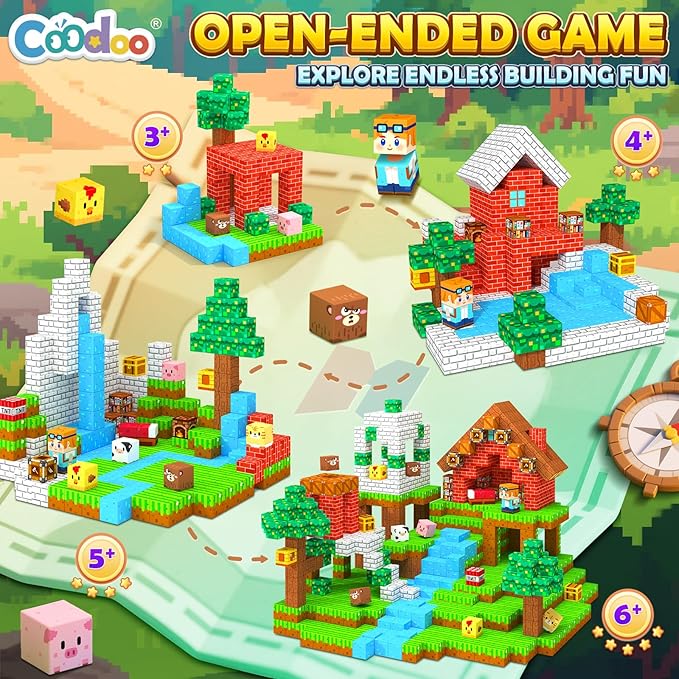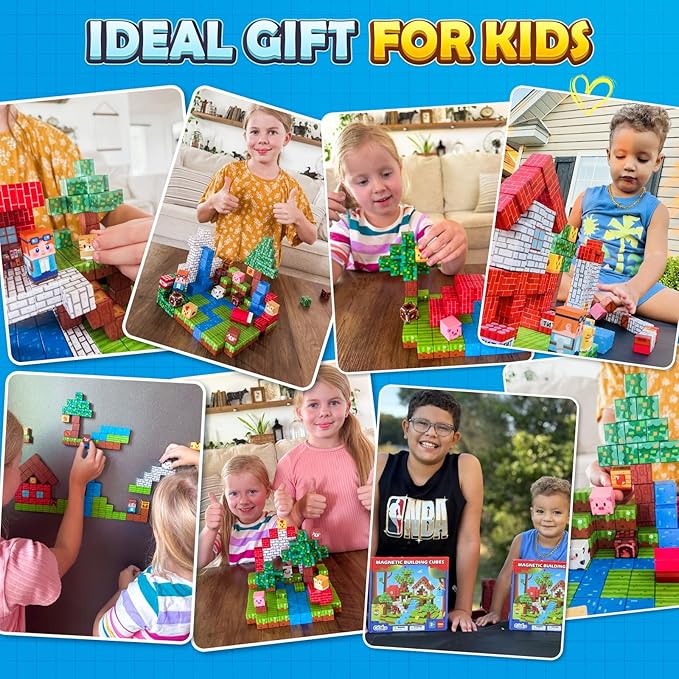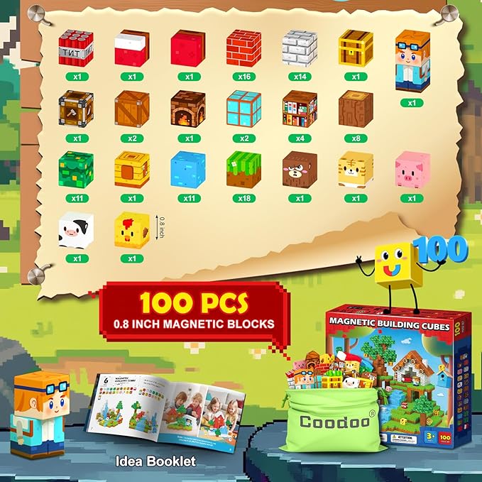 - Creative Building Fun: Includes 100 bright magnetic cubes (0.8 inch) with 22 unique prints, vibrant colors, and an idea booklet inspires endless builds. Kids can build magical rivers, animal homes, or tall castles—keeping play fresh, screen-free, and full of wonder.