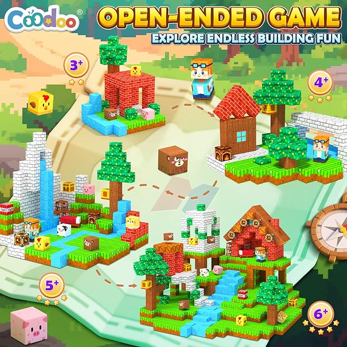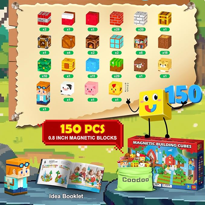 - Forest Fantasy World Builder: 150 Magnetic Blocks with 22 elements to Build a Kids' Animal Kingdom Adventure! Step into the magical forest and make friends with little animals like tigers, brown bears, and chicks! Build towering ancient trees with grass blocks, tree trunks, and leaves; construct wooden houses with red wall bricks and windows; pave paths with grey stone bricks; and dig a small river through the grass—150 blocks to create a kids' exclusive forest home