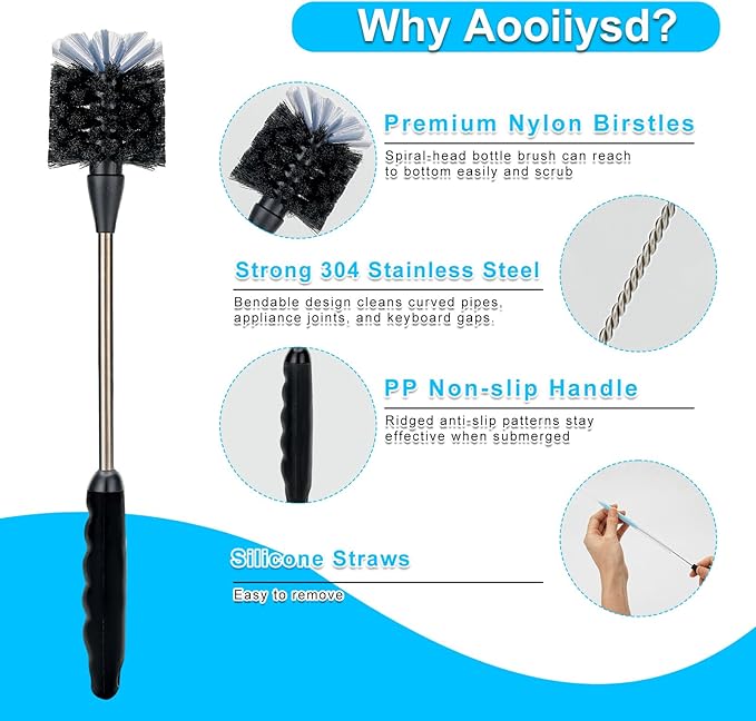 - Deep Clean : Spiral-head water bottle brush with firm nylon bristles scrubs thoroughly without scratching