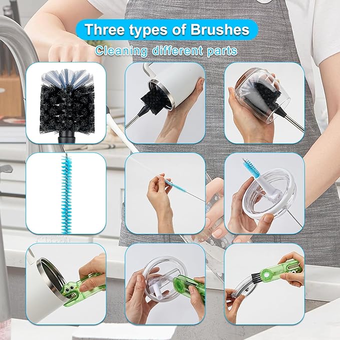 - Complete Set : Long Reach Water Bottle Brush, Straw Brush, 3-in-1 Multi-Use Cleaner and Stanley 40oz silicone boot